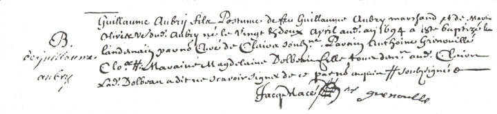 Nom du père : Guillaume AUBRY