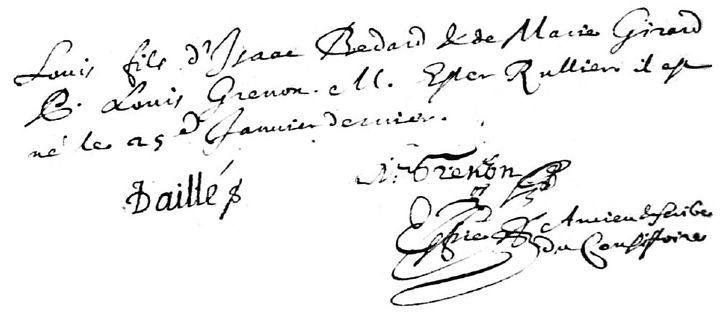 Remarques : Cinq frères et une soeur sont baptisés à La Rochelle (Temple protestant de la Villeneuve) : Jacques (pionnier), n. 15-12-1644 et b. 18-12-1644 ; François, n. 02-08-1646, b. 12-08-1646 et inh. 25-08-1647 ; Pierre, n. 21-12-1647, b. 22-12-1647 et inh. 06-11-1648 ; Richard, n. 14-09-1649, b. 21-09-1649 et inh. 18-07-1650 ; Isaac, n. 05-08-1652, b. 11-08-1652 et inh. 18-10-1652 ; Anne, née 07-02-1658, b. 17-02-1658 et inh. 24-10-1658.