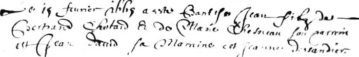 Remarques : Son frère Étienne Chotard est baptisé le 20-01-1667 à Marennes (St-Pierre-de-Sales) marié à La Rochelle (St-Jean-du-Pérot) (17300), le 08-01-1691 avec Anne Doré (Pierre et Marguerite Chenuau). Son père est cité défunt en 1691.