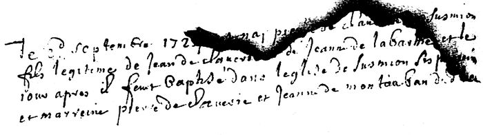 Remarques : En 1753, il est qualifié d'officier de Marine. En 1754, il achète les seigneuries de Rivière-du-Loup-en-bas (auj. Rivière-du-Loup) et de Madawaska. Les actes suivants sont à Susmiou (Ste-Catherine). Son père Jean de Claverie/Claverie, d. 06-04-1738, s. 07-04-1738 dans l'église à environ 42 ans. Sa soeur Catherine de Claverie, n/b 10-04-1726.